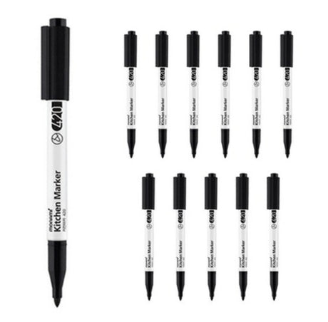 Monami Kitchen Marker 420 Black 12pcs Erasable with Dishwashing Liquid